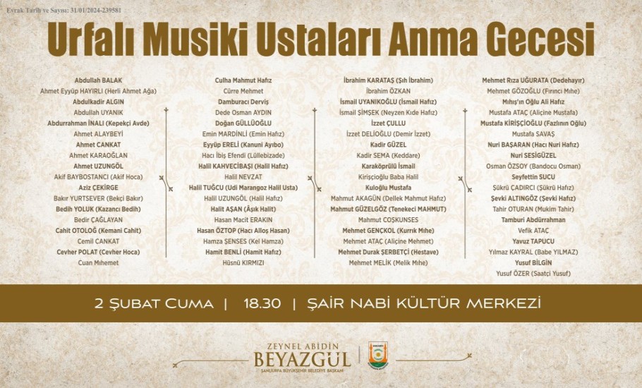 Urfalı Musiki Ustaları Anma Gecesi ile İlgili Duyuru