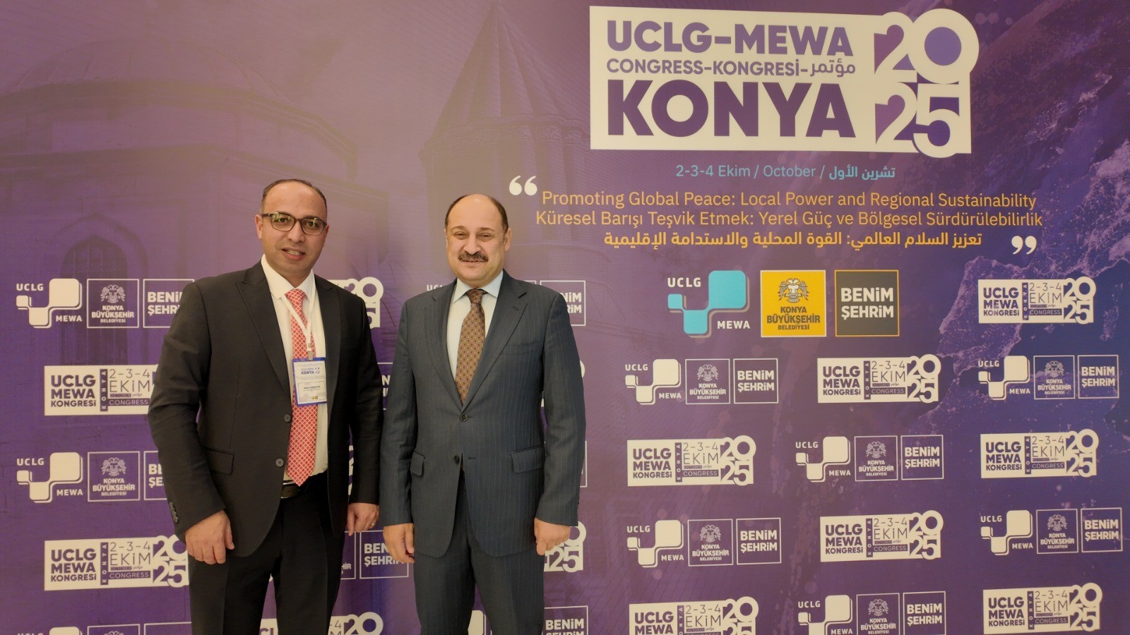 Türkiye Belediyeler Birliğinin (TBB) üyesi olduğu Birleşmiş Kentler ve Yerel Yönetimler Orta Doğu ve Batı Asya Bölge Teşkilatı (UCLG-MEWA) Kongre üyeleri Konya’da bir araya geldi. 17 Ülkeden 300'ün üzerinde yerel yönetimler temsilcisinin katılımıyla gerçekleşen kongrede Şanlıurfa Büyükşehir Belediye Başkanı Mehmet Kasım Gülpınar, uluslararası alanda yürüttüğü etkili çalışmalar ve kültürel diplomasi alanındaki öncü rolü dolayısıyla bir kez daha önemli görevlere tevdi edildi.