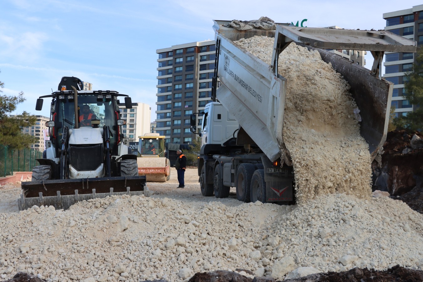Bu kapsamda Karaköprü İlçesi Doğukent Mahallesi’nde yer alan 102. Cadde üzerinde yol yapım çalışmaları hız kazandı. İmar planında 17 metre genişliğinde olarak projelendirilen ve 550 metre uzunluğa sahip olan cadde üzerinde ekipler tarafından terasman (zemin hazırlık) çalışmaları titizlikle yürütülüyor.